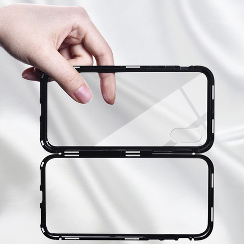 כיסוי לטלפון ספיחה מגנטית עם פנים כפולות מתכת כיסוי לטלפון מזכוכית מחוסמת שקופה
