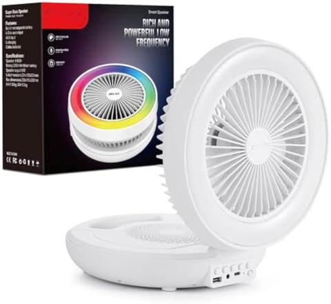 ลำโพงบลูทูธไร้สายแบบพกพาที่ทันสมัยพร้อมไฟกลางคืน LED พัดลมชาร์จไฟได้สวิตช์ควบคุมระยะไกล